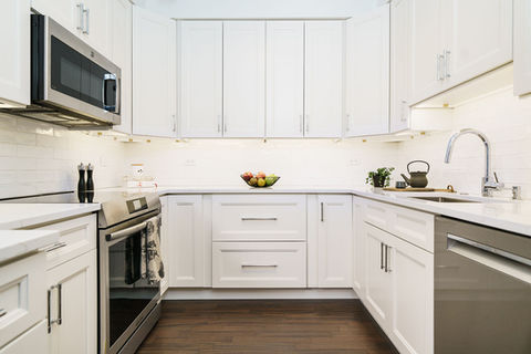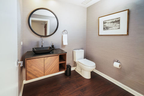 Just off Michigan Ave, this condo features a custom built-in that spans the living room—perfect for display or hosting, grounding the space with intention. A completely reimagined kitchen showcases custom cabinetry designed for maximum storage, blending function and sleek design seamlessly throughout. A thoughtfully designed powder room completes the home with elevated, cohesive finishes.